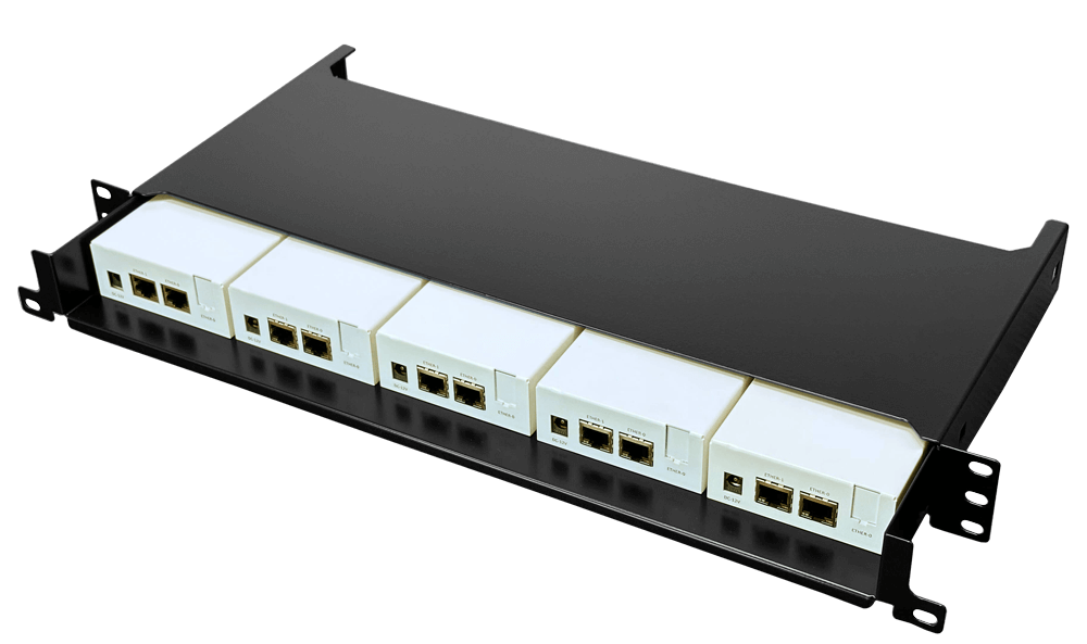 筐体が非常に小型であり、別売のラックマウントキットを導入することで、1Uラックに最大5台まで格納できます。ラインナップは、1種類となります。